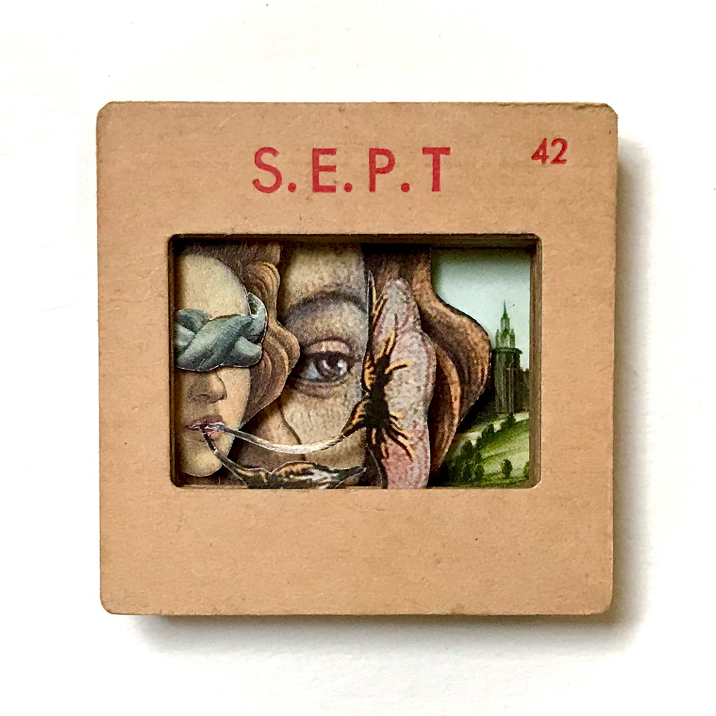 Collage placed on an old photographic slide