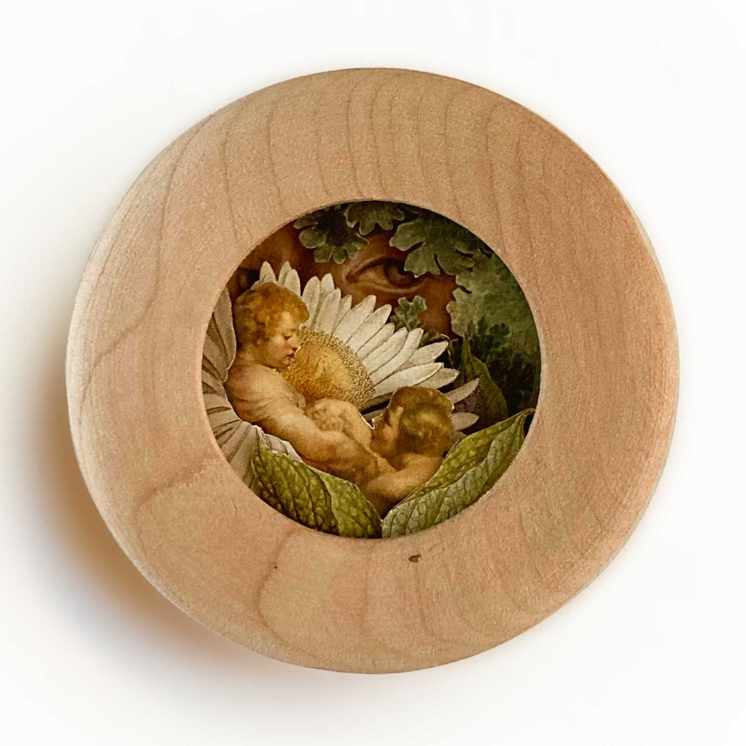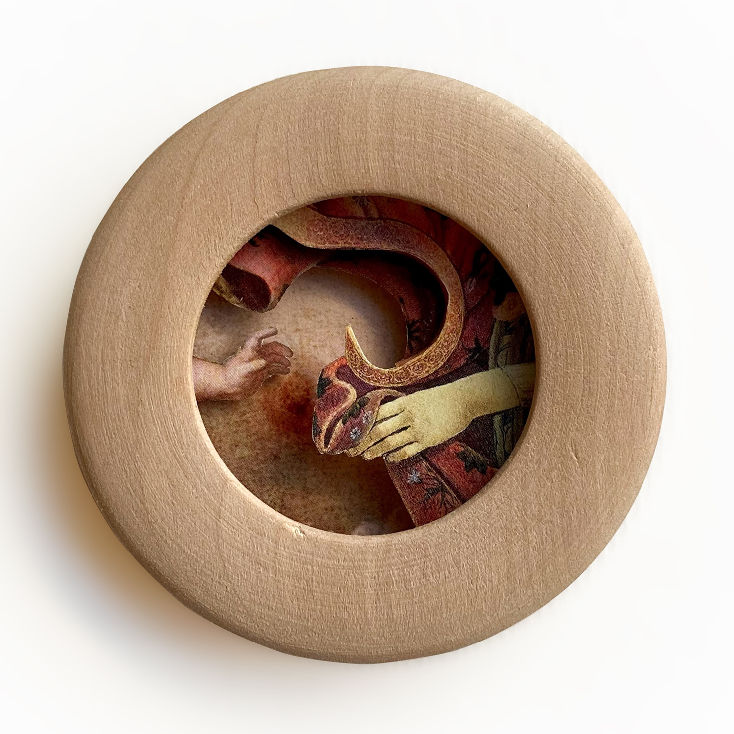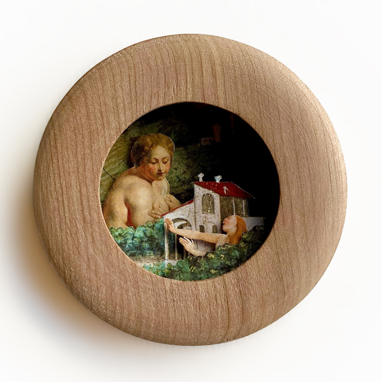 Del eterno femenino corresponde a una serie de collages análogos tridimensionales en pequeño formato que abren una grieta entre la representación de la mujer en la historia del arte y la experiencia contemporánea de ser mujer y maternar.